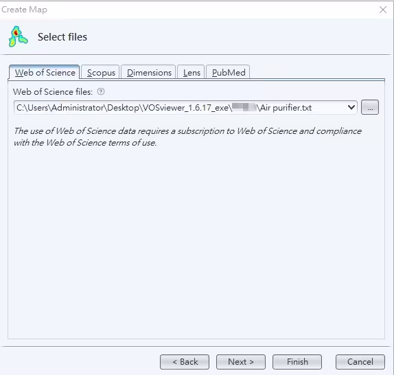 - Create → 建立文獻地圖 → 選擇資料輸入方式 → 選擇檔案(可複選):