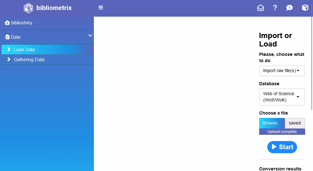 該過程亦可透過 Bibliometrix 的 Biblioshiny 進行轉換(使用 GUI 介面操作)。步驟如下述: